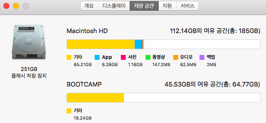 부트캠프(윈10) 설치되있으나, 이것도 삭제가능합니다.
